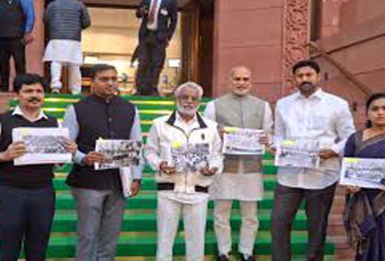 YSRCP MPs staged a protest against the privatization of medical colleges in Andhra Pradesh at the Makara Dwar of Parliament building