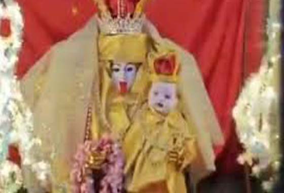A statue of Goddess Kali temple in the Chembur area in Mumbai was dressed to resemble Mother Mary