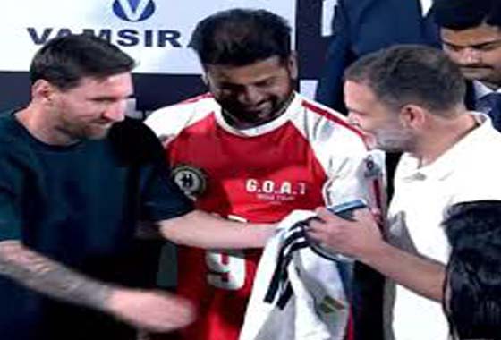 Lok Sabha opposition leader, Rahul Gandhi also met Argentine football legend Lionel Messi in Hyderabad and was presented the GOATED No. 10 jersey by the World Cup winner. He met Messi, who is visiting India as part of the GOAT Tour, and spent time with him.