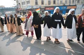 Kolkata: The People of Kolkata formed a human chain with hand into hand on Sunday on the occasion of Republic Day in a protest against CAA. The people from different communities held hands to form an Eleven Kms chain, stretching from the North to the South of the city and read aloud the Preamble.
