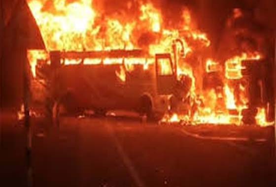 Andhra Pradesh: Atleast Twelve people were burnt alive in a private travel bus fire accident in Markapuram district on early Thursday morning. According to the police a private travel bus collided with a tipper lorry and caught fire in Markapuram district early Thursday morning in AP.