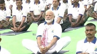 New Delhi/Ranchi: Indian Prime Minister Narendra Modi participated in Yoga camp at the Prabhat Tara ground in Ranchi the capital city of Jarkhand on the eve of fifth International Yoga day on Friday. He performed various asanaas along with 40,000 peoples at Prabhat Tara Ground.