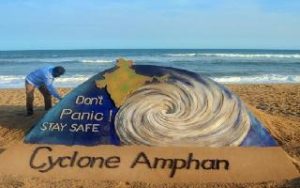 During the last six hours, the storm has moved closer to the coast at a speed of 22kmhr. Kolkata on Wednesday morning, the Super Cyclonic Storm ‘AMPHAN’ (pronounced as UM-PUN) is very likely to move north-northeastwards across the northwest Bay of Bengal and cross West Bengal – Bangladesh coasts between Digha (West Bengal) and Hatiya Islands (Bangladesh) close to Sundarbans during afternoon to evening hours May 20, 2020 with maximum sustained wind speed of 155-165 kmph gusting to 185 kmph.
